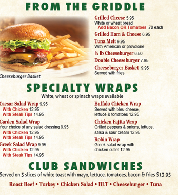 Syrian pockets, white, wheat, or spinach wraps available as large size only. White & wheat bread, or toast available as small size.